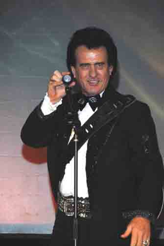 Rhythm" and "Man in Black". He also recorded humorous numbers, such as "One Piece at a Time" and "A Boy Named Sue"; a duet with his future wife,